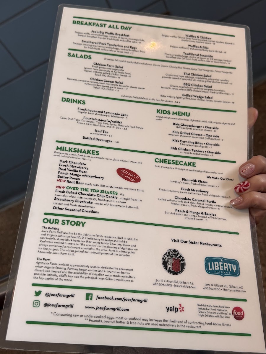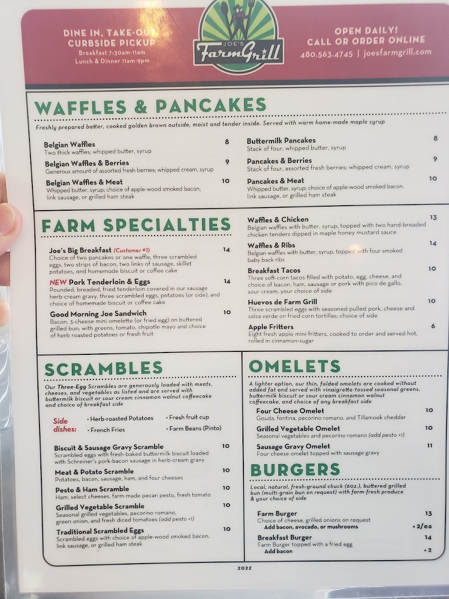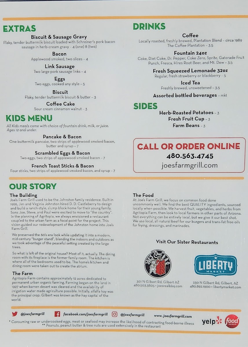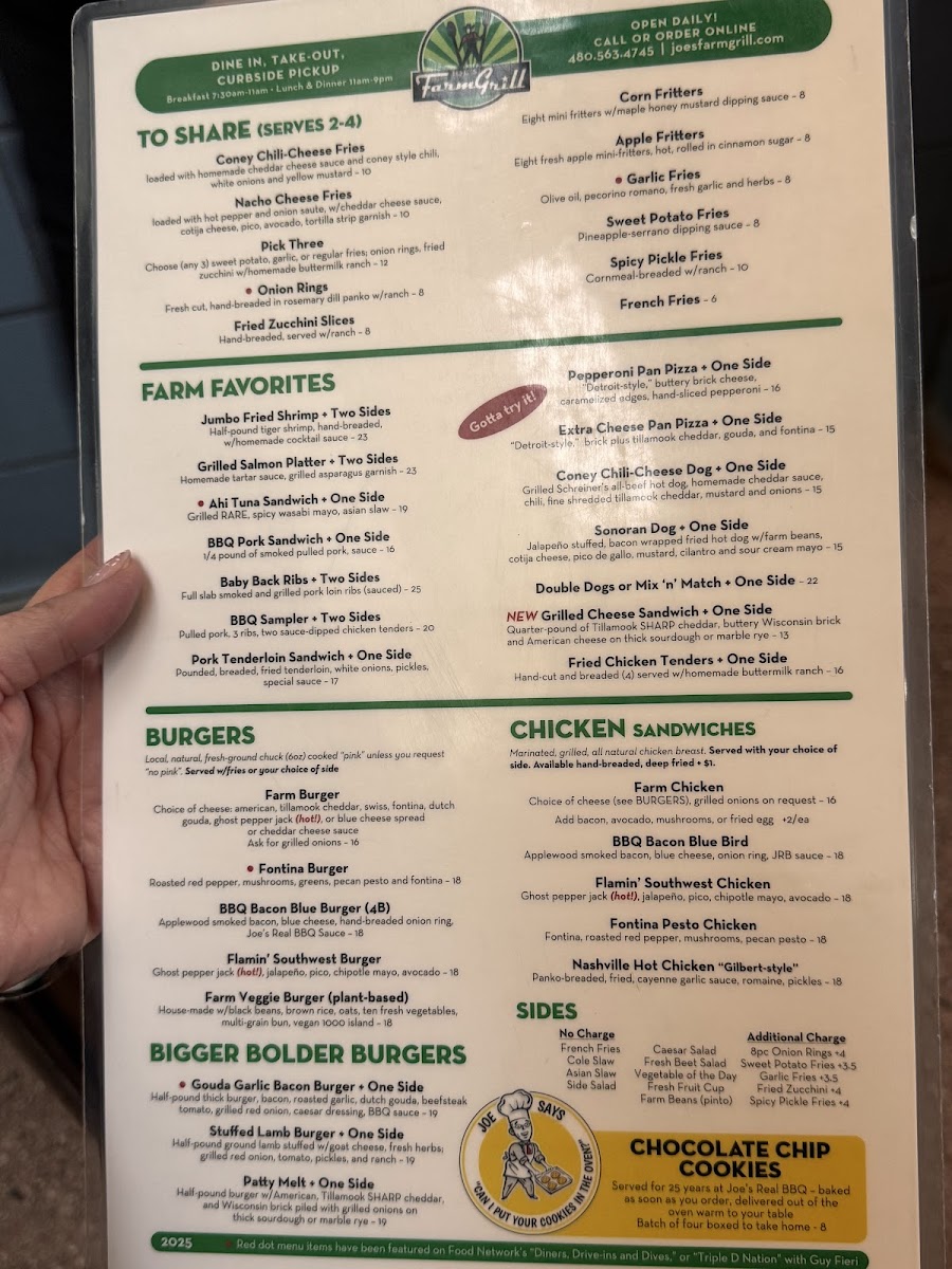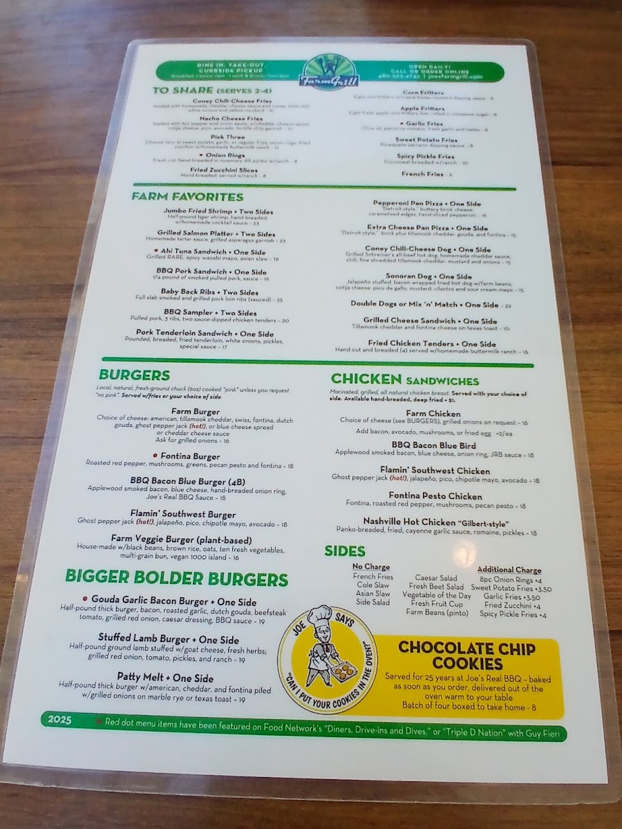Joe's Farm Grill Menu